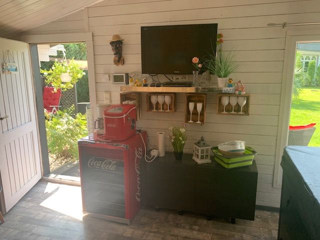 Weiter befindet sich im sauna-Badehaus Tolette, Dusche, Coutsch, kühlschrank, Spühle,Fernseher und WLAN.